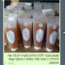סטוק סבון ללין פילינג לגוף כמות: 100 יחידות מחיר: 10 ש"ח ליחידה … פרטים נוספיםסטוק סבון ללין פילינג לגוף